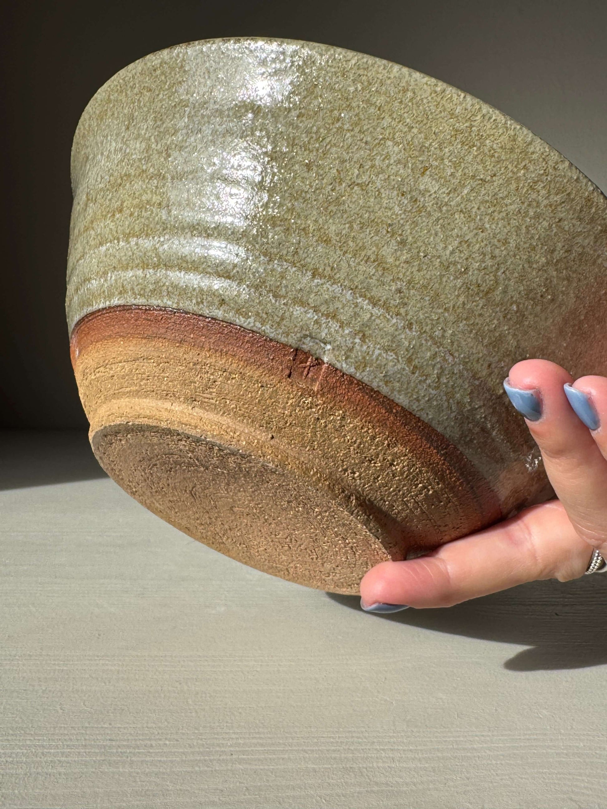 Het is een kom die rustig en aards aanvoelt, maar vol stille diepte zit. Perfect voor dagelijks gebruik — voor fruit, kleine gerechten of gewoon om neer te zetten als een uniek stuk met een verhaal.