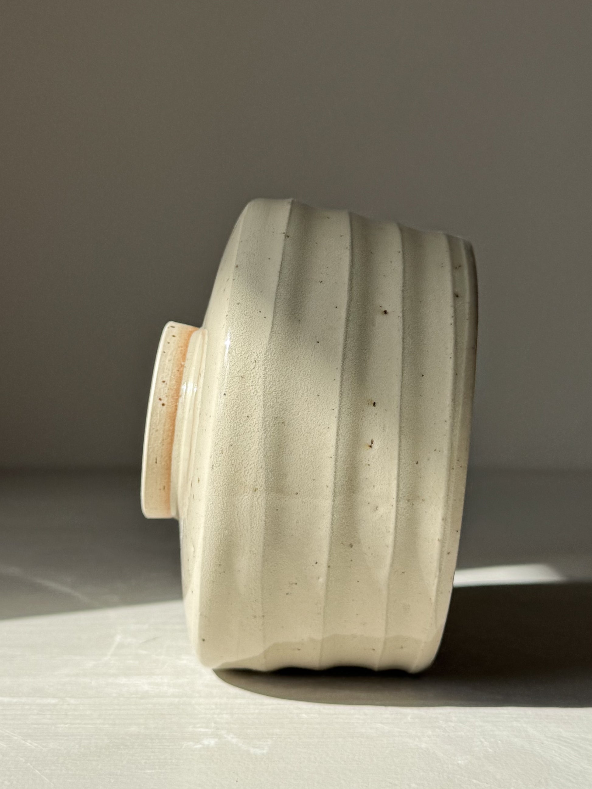 Deze Matcha Kom, afgewerkt met een prachtig transparante glazuur, laat de natuurlijke schoonheid van het steengoed volledig tot zijn recht komen. De eenvoud van de transparante glazuur benadrukt de subtiele texturen en aardetinten van de klei, waardoor elke kom een uniek en elegant onderdeel wordt van je theeritueel. De zachte ribbels langs de zijkanten voegen een tastbare kwaliteit toe, waardoor het een plezier is om vast te houden en te gebruiken.