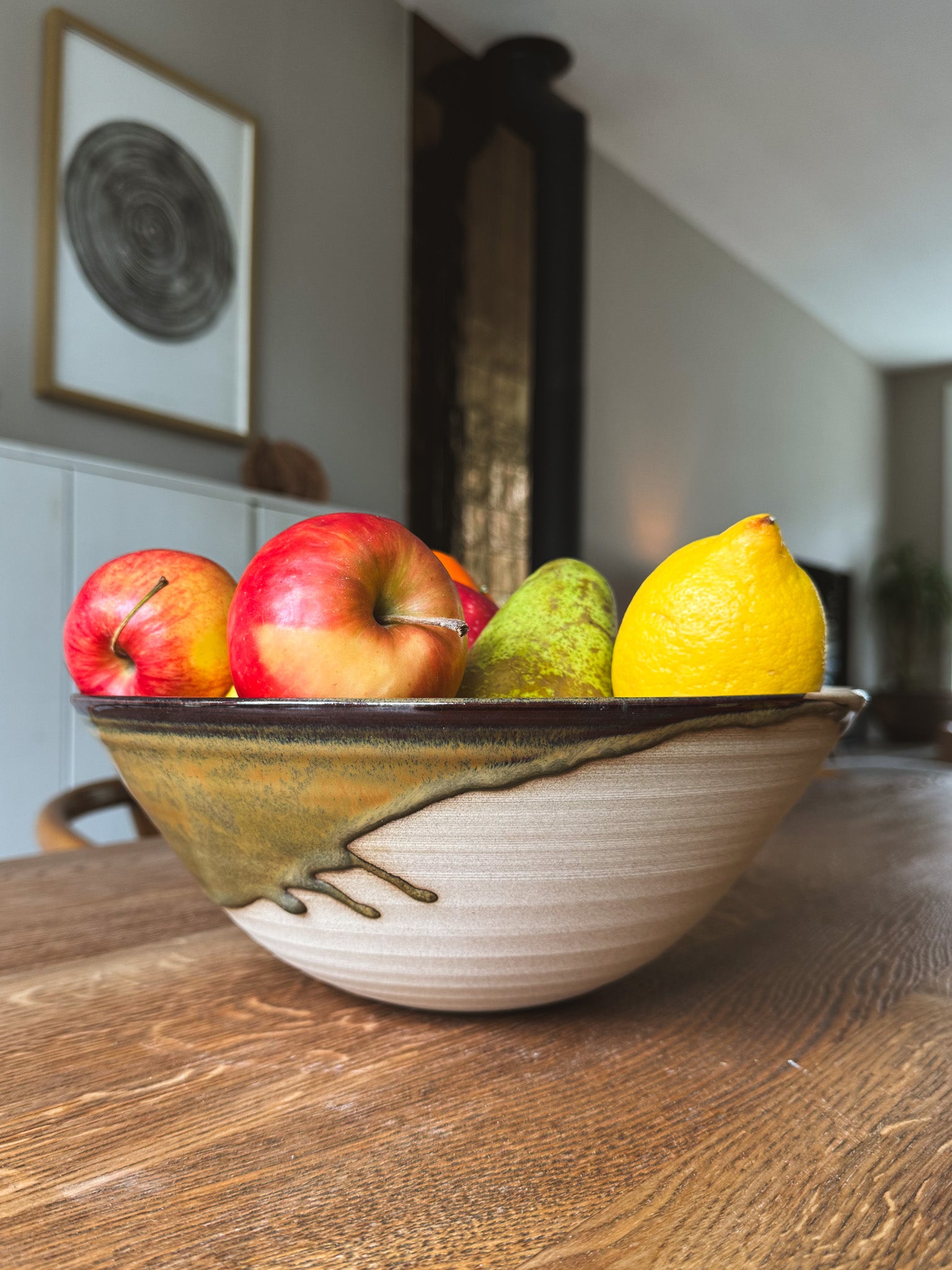 Dit formaat is perfect voor royale salades, pasta, gerechten om te delen of als fruitschaal op tafel. De schaal voelt krachtig, warm en praktisch aan, met voldoende diepte om echt veelzijdig te zijn.