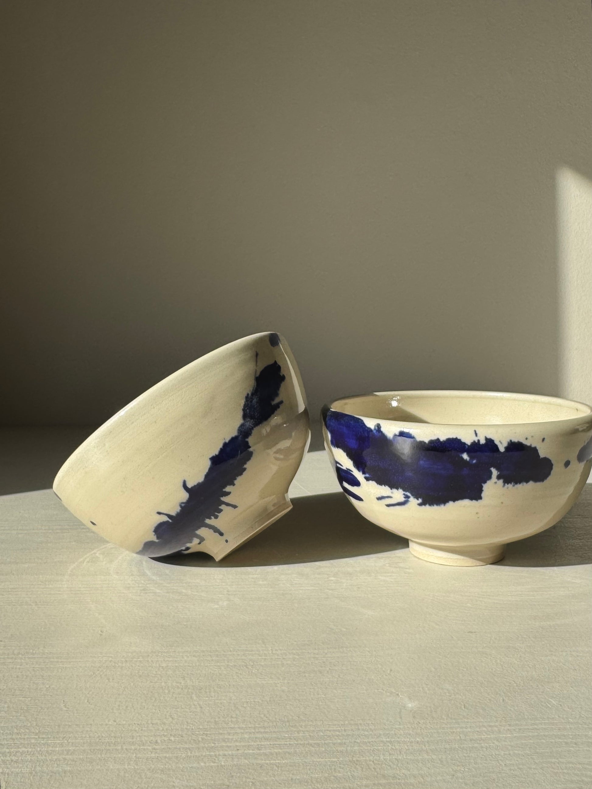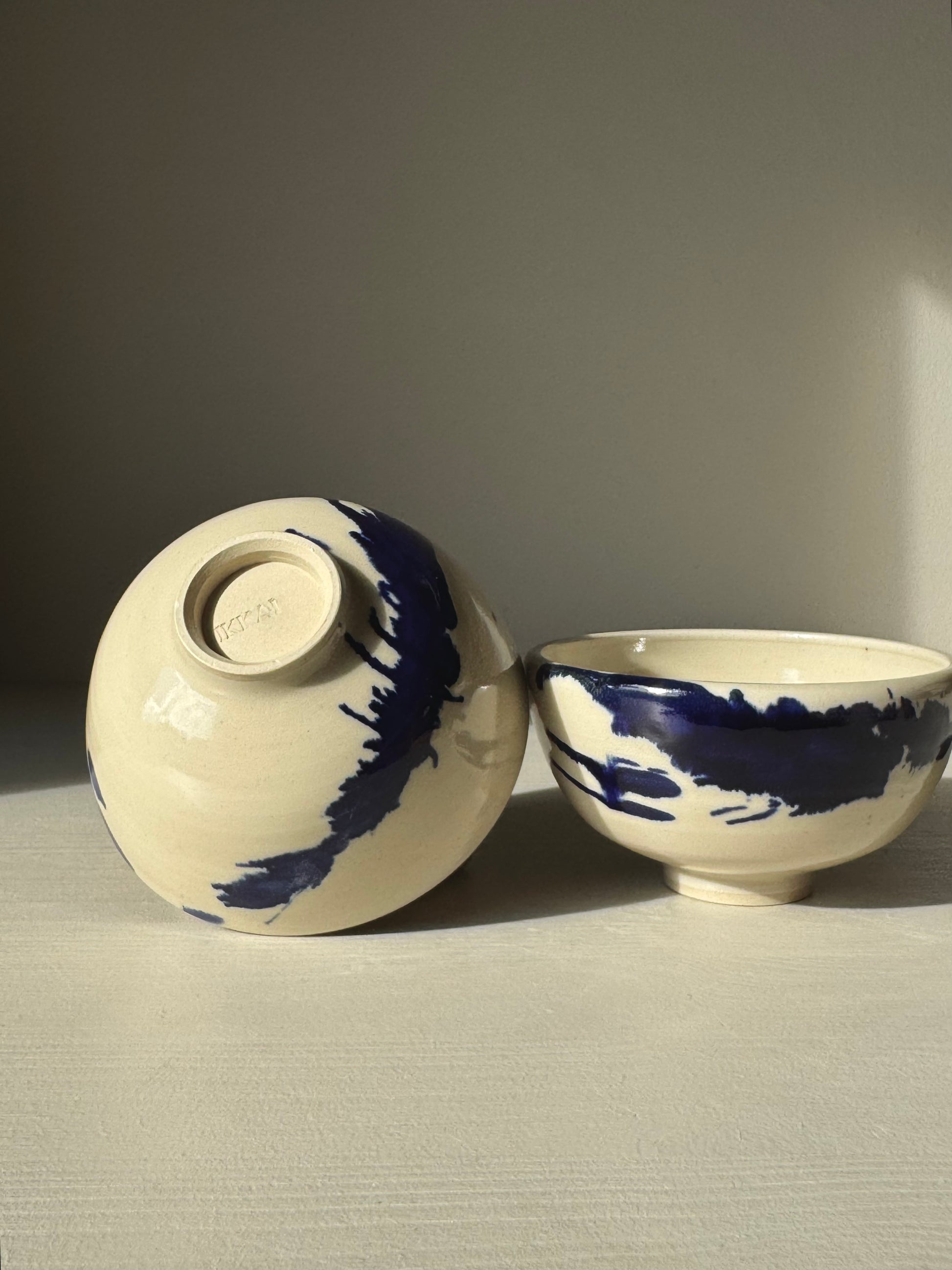 Deze Kom maakt deel uit van de Gosu Serie, waar diepe kobaltblauwe spetters energie en karakter aan elk stuk geven. Elke kom is met de hand gemaakt, waardoor geen twee exemplaren exact hetzelfde zijn—jouw kom is dus echt uniek.