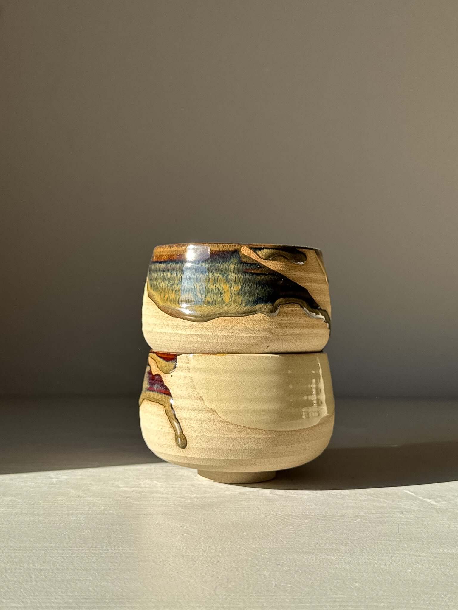 Omdat elke kopjes met de hand op mijn draaischijf wordt gemaakt, kunnen er kleine variaties zijn in vorm, grootte en glazuurpatroon—deze subtiele verschillen maken elk stuk uniek.