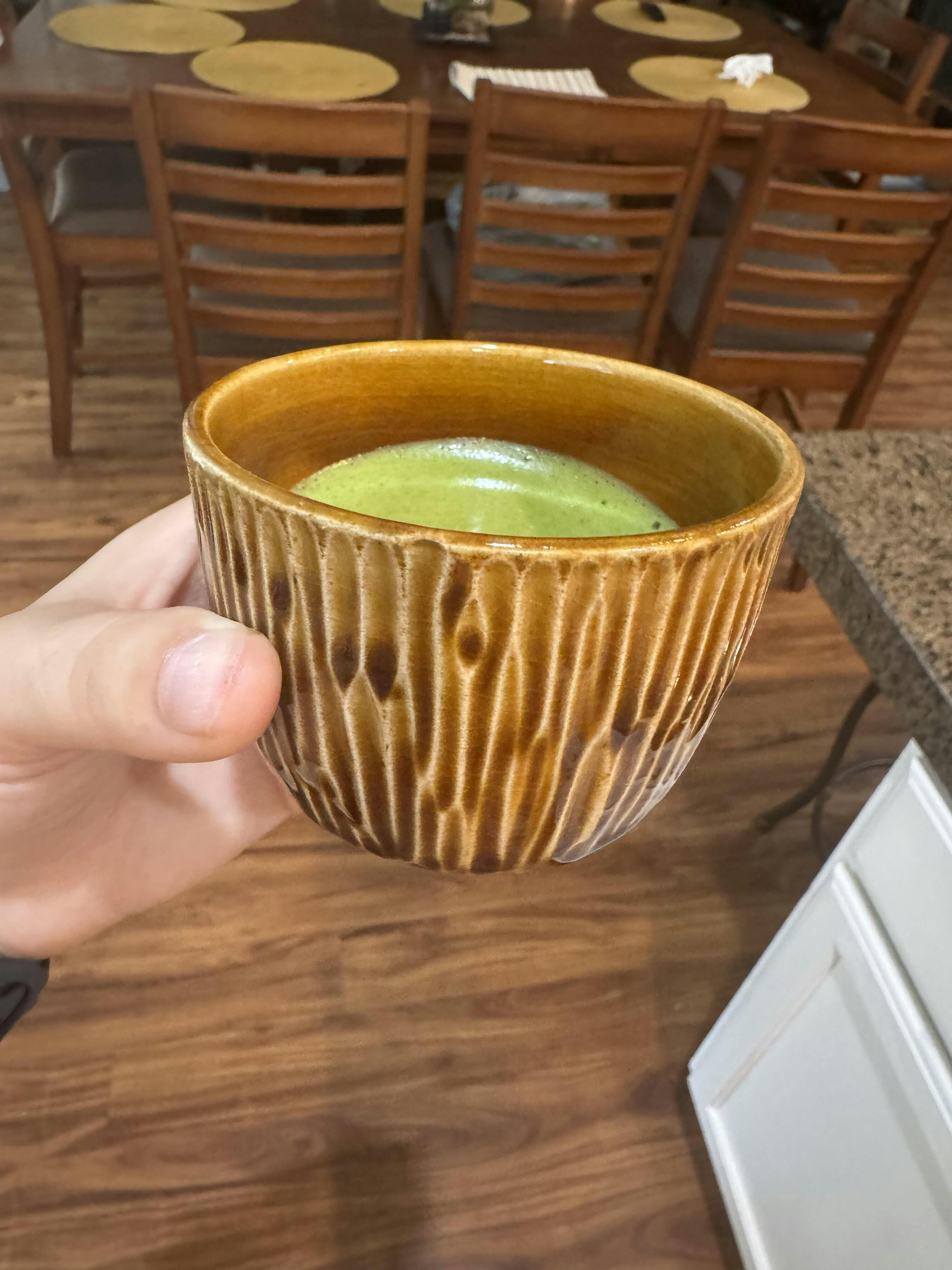 This bowl is so intricately carved, and the glaze is mesmerizing. It feels a bit like the bark of a tree when you hold it. Traditionally, the matcha experience involves all the senses, and this bowl definitely invites slowing down and appreciating the incredible craftmanship. I absolutely love it!