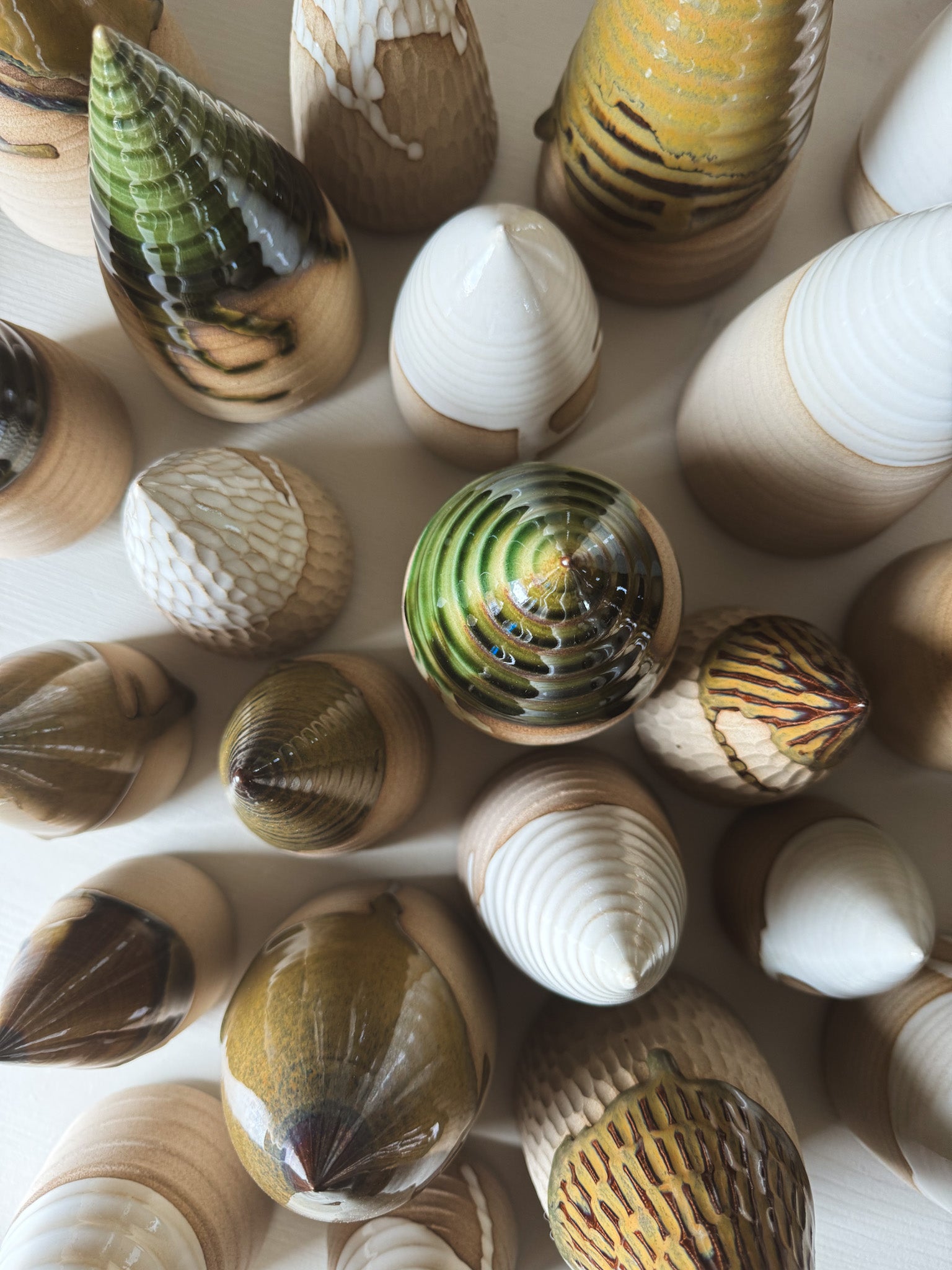 Each Carved Christmas Tree from the Yuki Series is thrown on the wheel and hollow inside, then slowly hand-carved on the outside, creating a soft rhythm of patterns that catch the light beautifully.