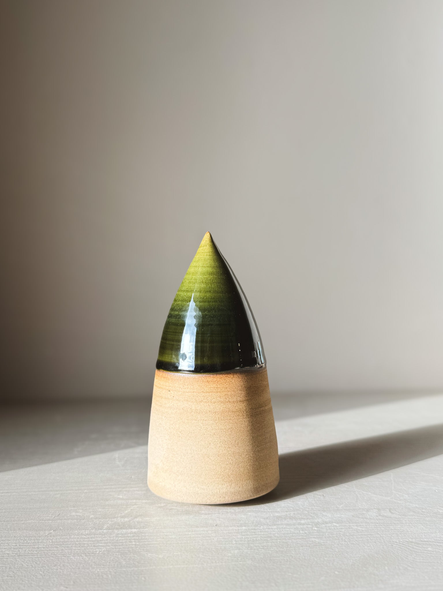 Each Ceramic Christmas Tree from the Mori Series is thrown on the wheel and hollow inside, shaped slowly by hand and finished with a deep, glossy forest-green glaze that flows and settles in its own gentle way.
