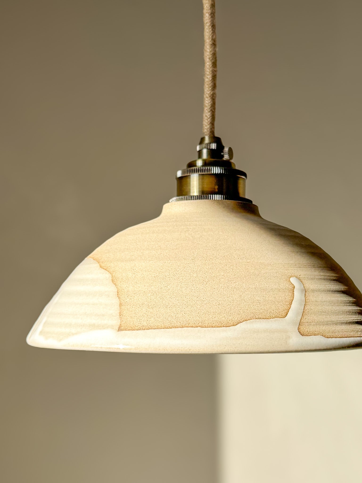 Each lampshade is thrown on the wheel and finished by hand, the exact size, glaze line, and clay texture will always have small differences. Those little variations are exactly what makes every piece one of a kind.