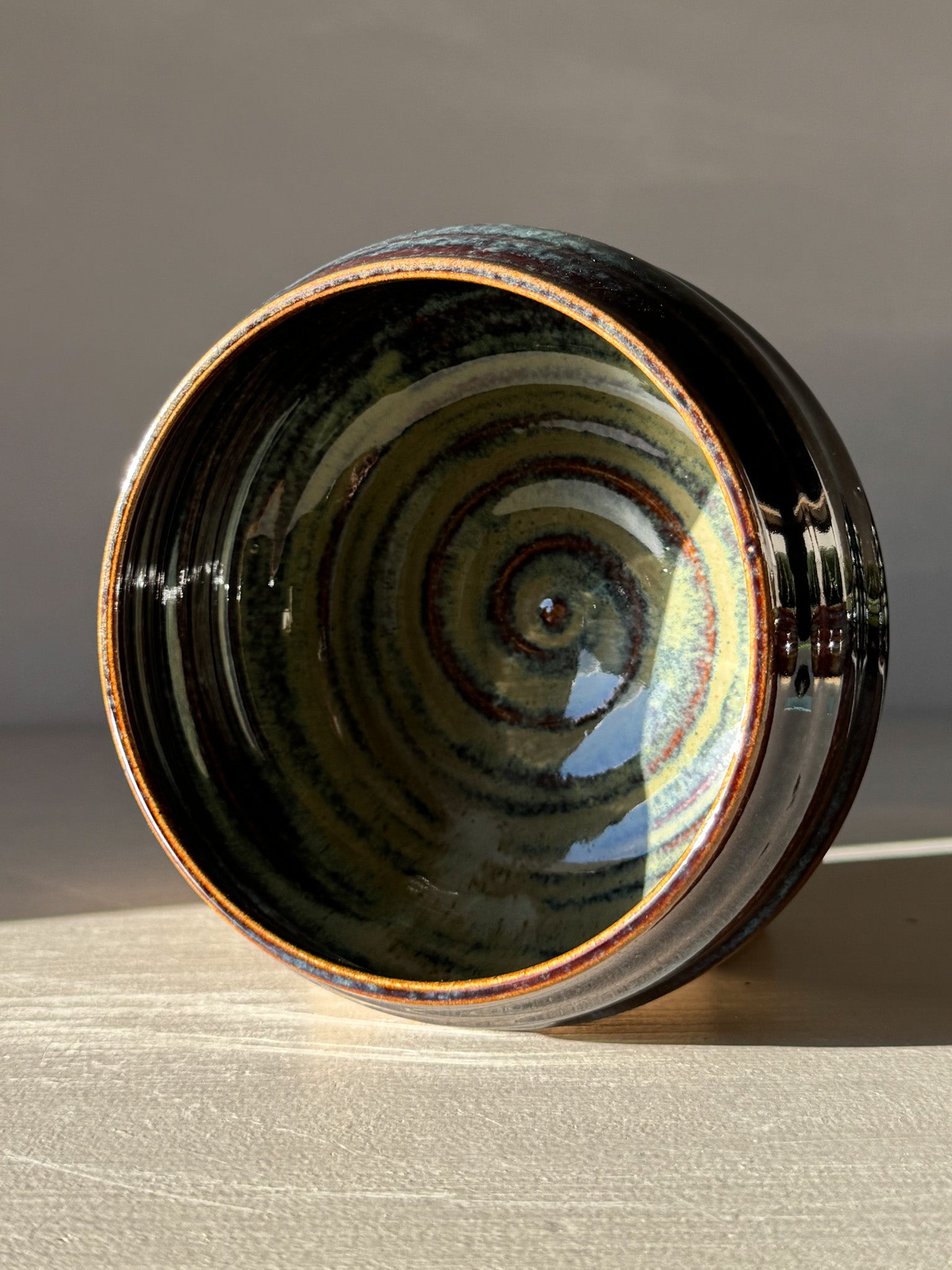 The glaze on this bowl has a way of telling its own story — deep browns flowing into ocean blues, as if capturing movement in stillness. It’s not polished or perfect, and that’s the point. Each mark and variation makes it feel alive, like a piece that could only ever exist once.