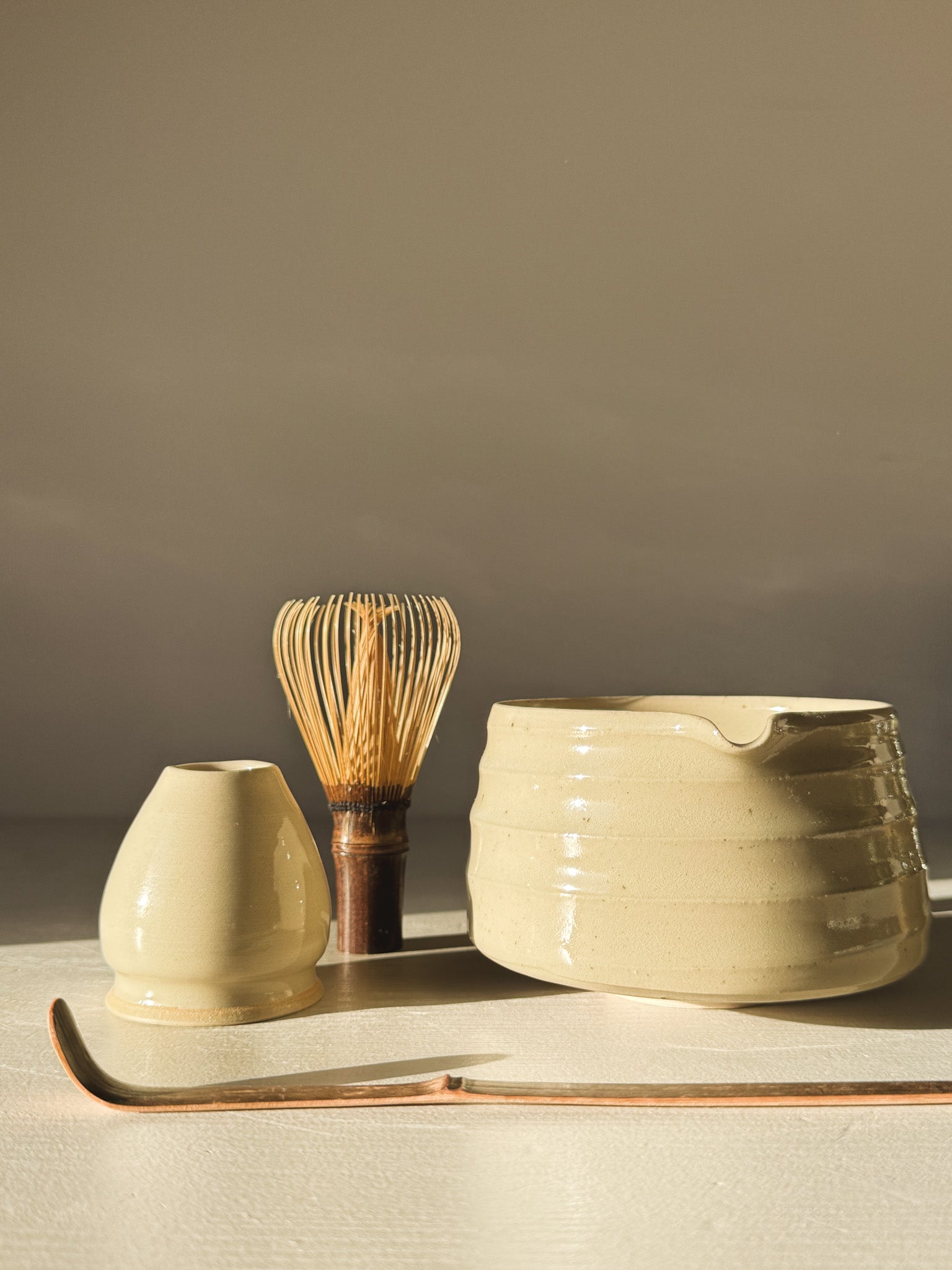 - Shape: Rounded matcha bowl with pouring spout and subtle texture