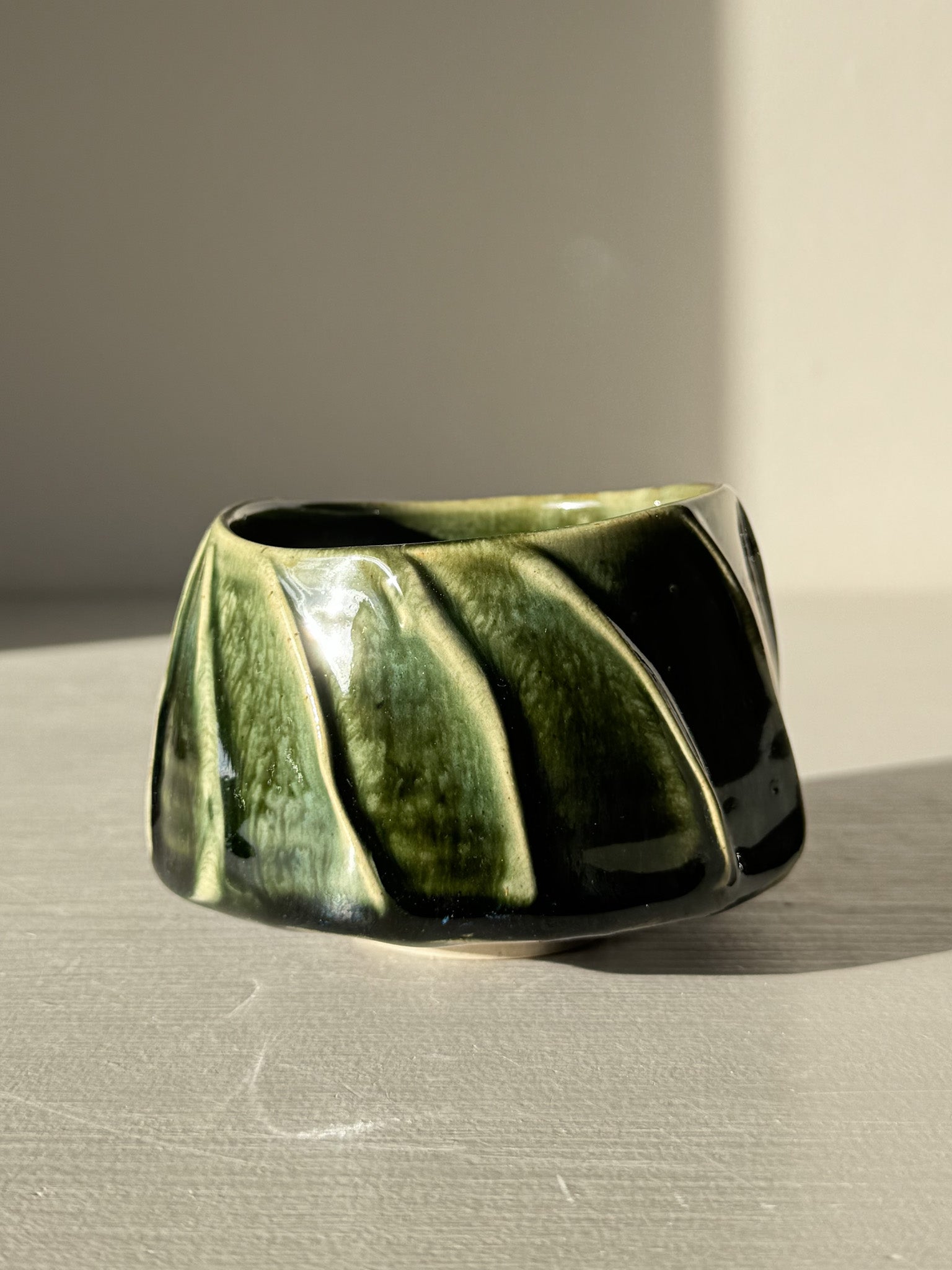 - Finish: Glossy deep green glaze with soft variation